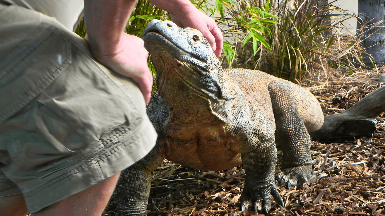 Komodo dragons, largest lizards at 10 feet and over 330 pounds, originated 3-4 million years ago in Australia, now dominating Indonesian isles. Venom discovered in 2009 halts clotting and causes blood loss; they devour 80% of body weight per meal.
